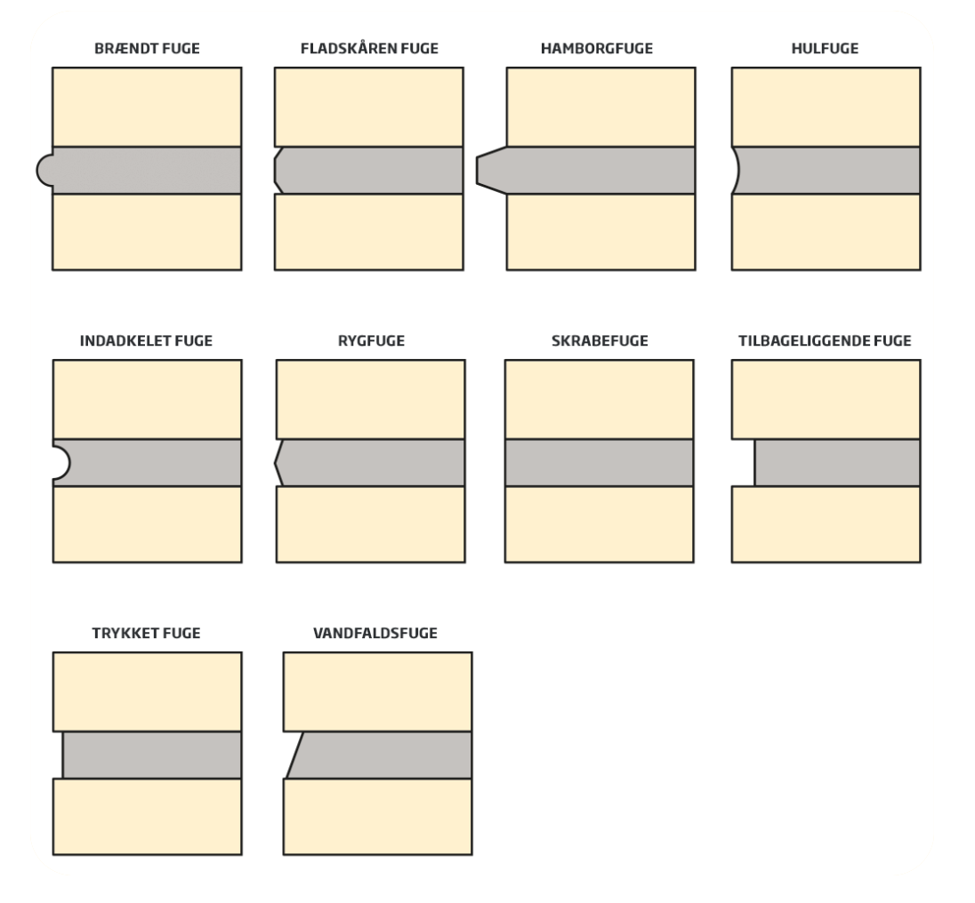 Formen på fugen kan ændre udtrykket af bygningen. Forskellige typer har været populære gennem tiderne. På klassiske murermestervillaer og mange af Københavns og Frederiksbergs etagebygninger fra 1890’erne til 1940’erne har skrabefuger været mest anvendt. Skrabefugen kaldes også “københavnerfuge”. I 1950-80 blev den tilbageliggende fuge mere brugt. I dag er skrabefugen, hulfugen og en fuge trykket ca. 1-2 mm de mest gængse til omfugning.
